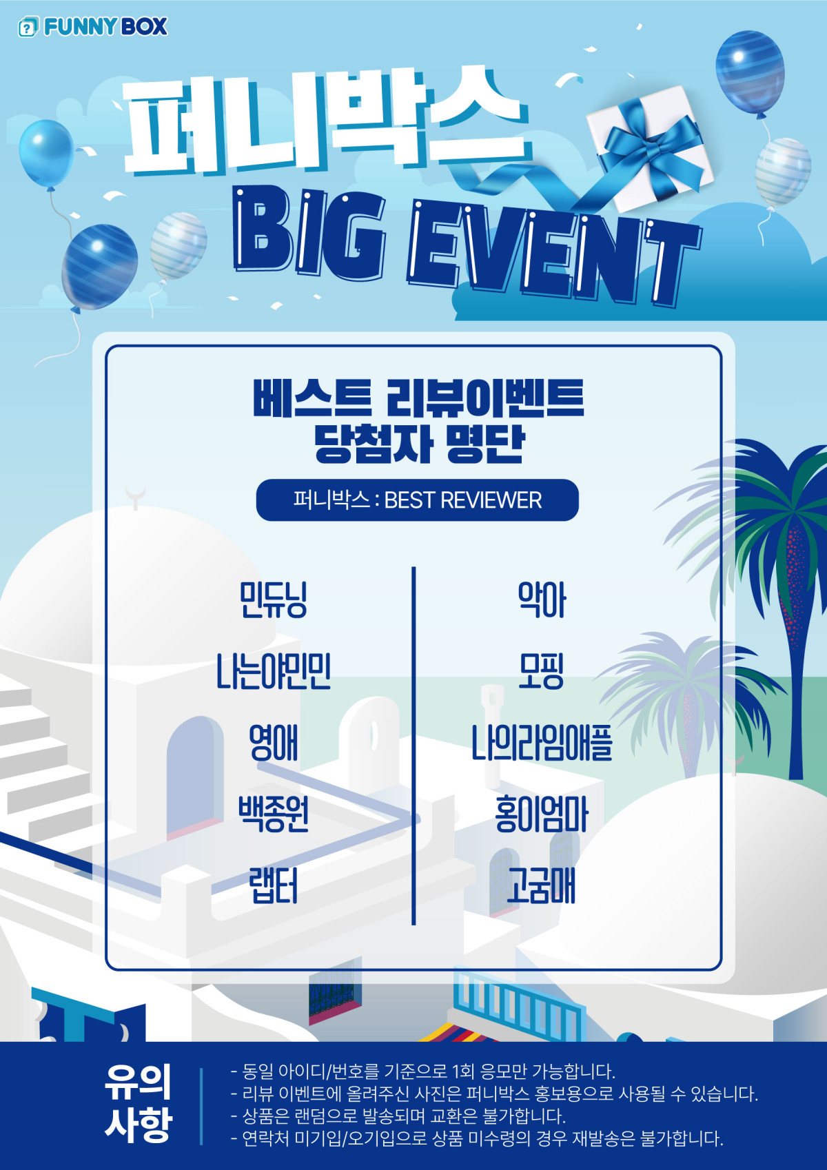 - 다음글☆★퍼니박스 리뷰이벤트 당첨자 발표☆★ 23.01.12