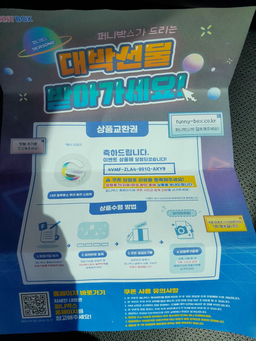 가족들이랑 제주도 놀러가서 아이들이 퍼니박스기계가 하고 싶다고 하여 놀러간 김에 한번 뽑기를 하였는데 뽑자마자 두둥하고 당첨되어서 아이들이 무척 좋아했습니다. 그날은 아이들이 기분이 좋아 말도 잘 들었네요. 암튼 퍼니박스 때문에 기분이 좋은 하루였네요. 감사합니다.