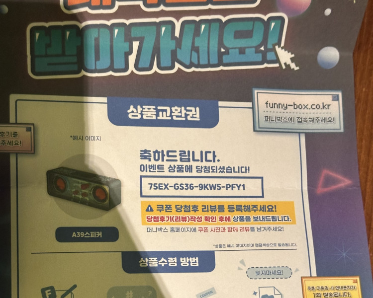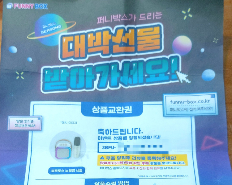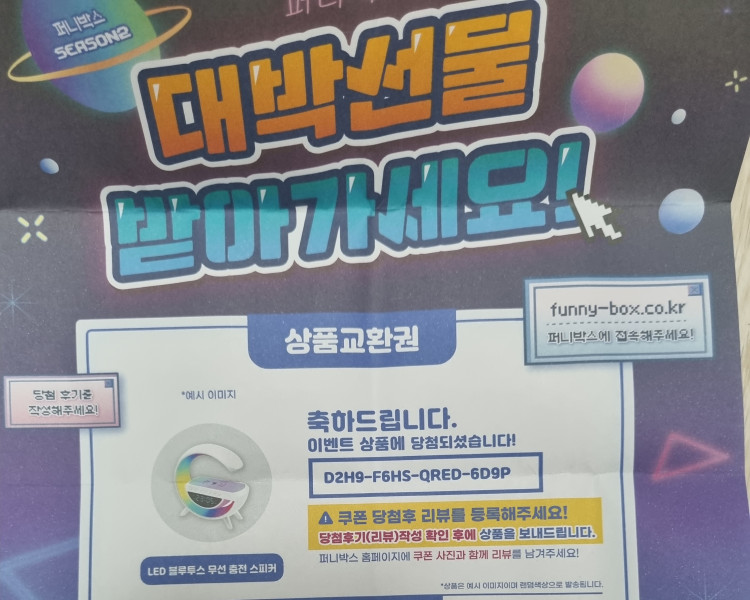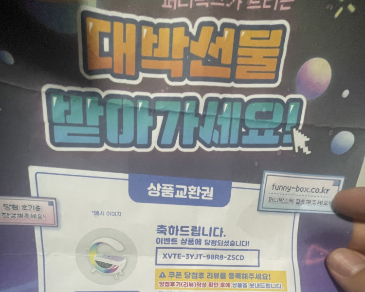 퍼니박스 당첨 인증 및 후기 게시판입니다. 당첨 쿠폰을 사진과 함께 멋진 리뷰를 남겨주세요~ 이런건 당첨 안 된..