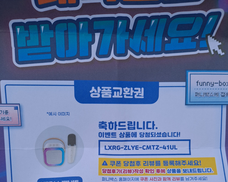 아이랑 나들이 갔다가 퍼니박스가 있길래 뽑았더니, 블루투스가 당첨되서 선물을 기다리고있어요~♡