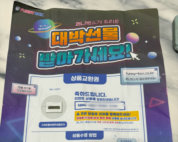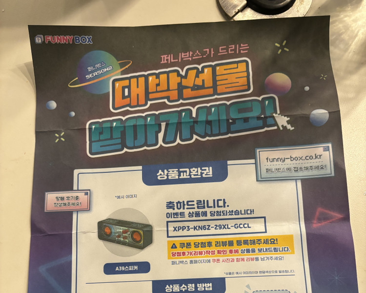 퍼니박스 당첨 인증 및 후기 게시판입니다. 당첨 쿠폰을 사진과 함께 멋진 리뷰를 남겨주세요~