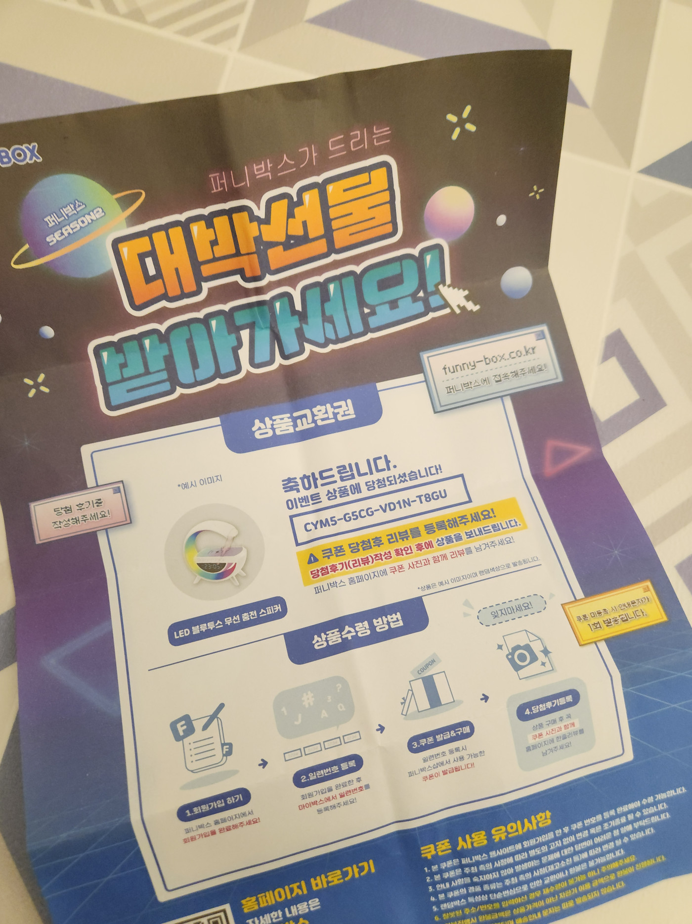 당첨 감사요 페이지 정보 본문 퍼니박스 당첨 인증 및 후기 게시판입니다. 당첨 쿠폰을 사진과 함께 멋진 리뷰를 남겨주세요~ 당첨 기분오지구연_~ 이전글당첨 감사합니다 24.04.11 다음글당첨 감사요 24.04.10 목록 댓글 0 댓글목록 등록된 댓글이 없습니다.