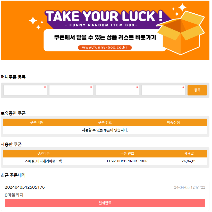 당첨 인증합니다. 페이지 정보 본문 퍼니박스 쿠폰상품 인증입니다. 감사합니다. 이전글퍼니랜드 당첨 인증합니다~ 24.04.12 다음글인증합니다! 24.04.12 목록 댓글 0 댓글목록 등록된 댓글이 없습니다.