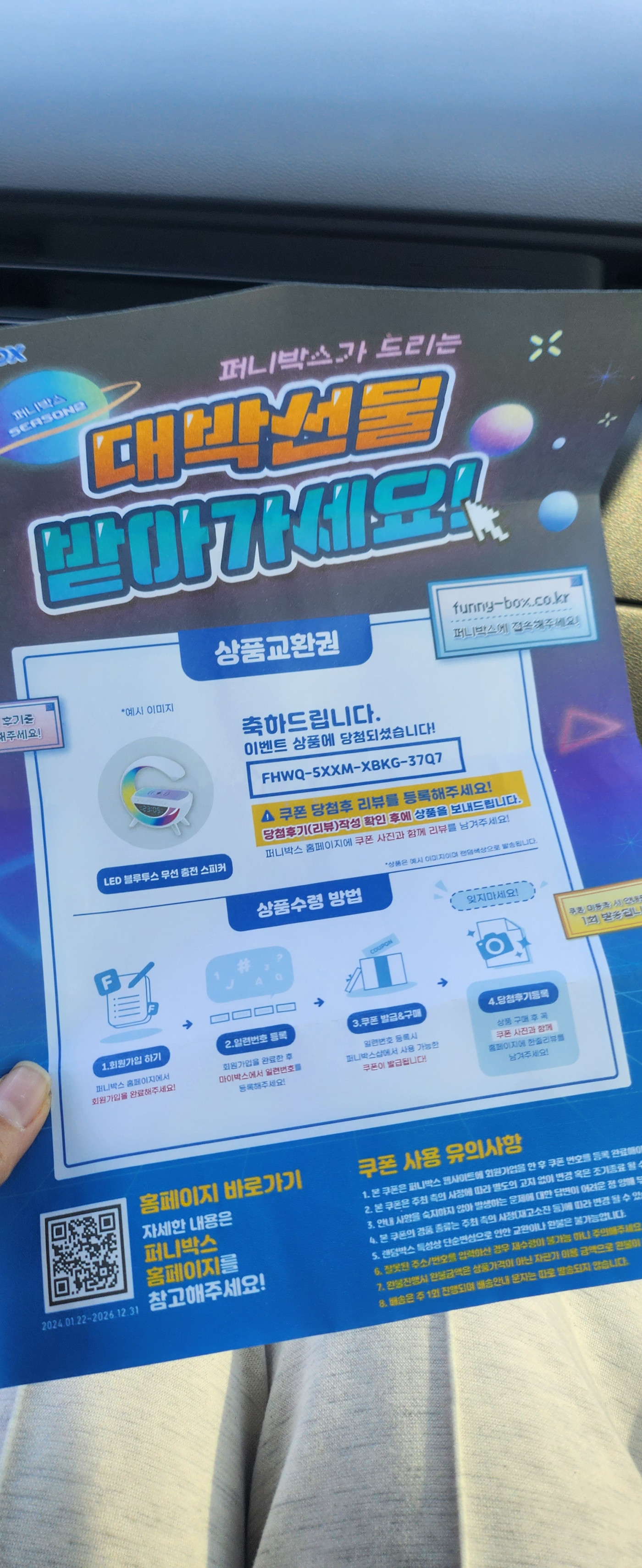처음에는 가벼워서 실망했는데 당첨 종이 보고 엄청 좋아했어요
