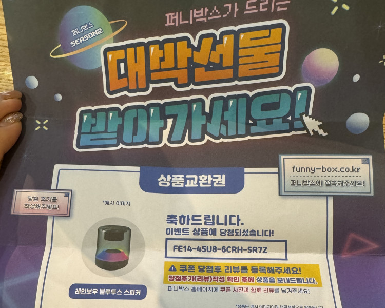 퍼니박스 당첨되어 후기 남깁니다~ 스피커 기대됩니다~