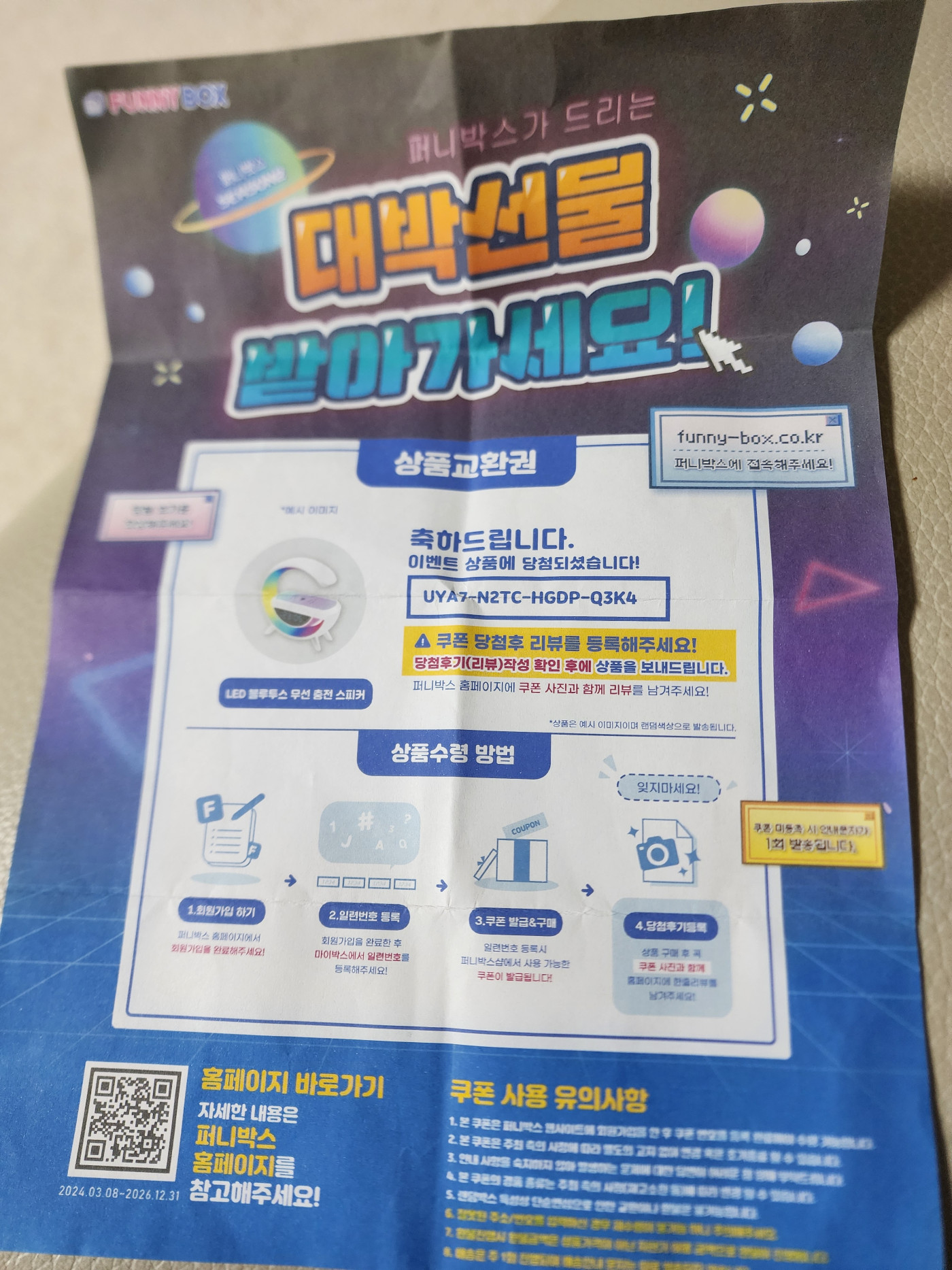 열어보니 너무 좋은 선물 이벤트 종이가 떡~~~ 하니 있더군요~ 저희 아들이 황금손이었네요~ 감사합니다~