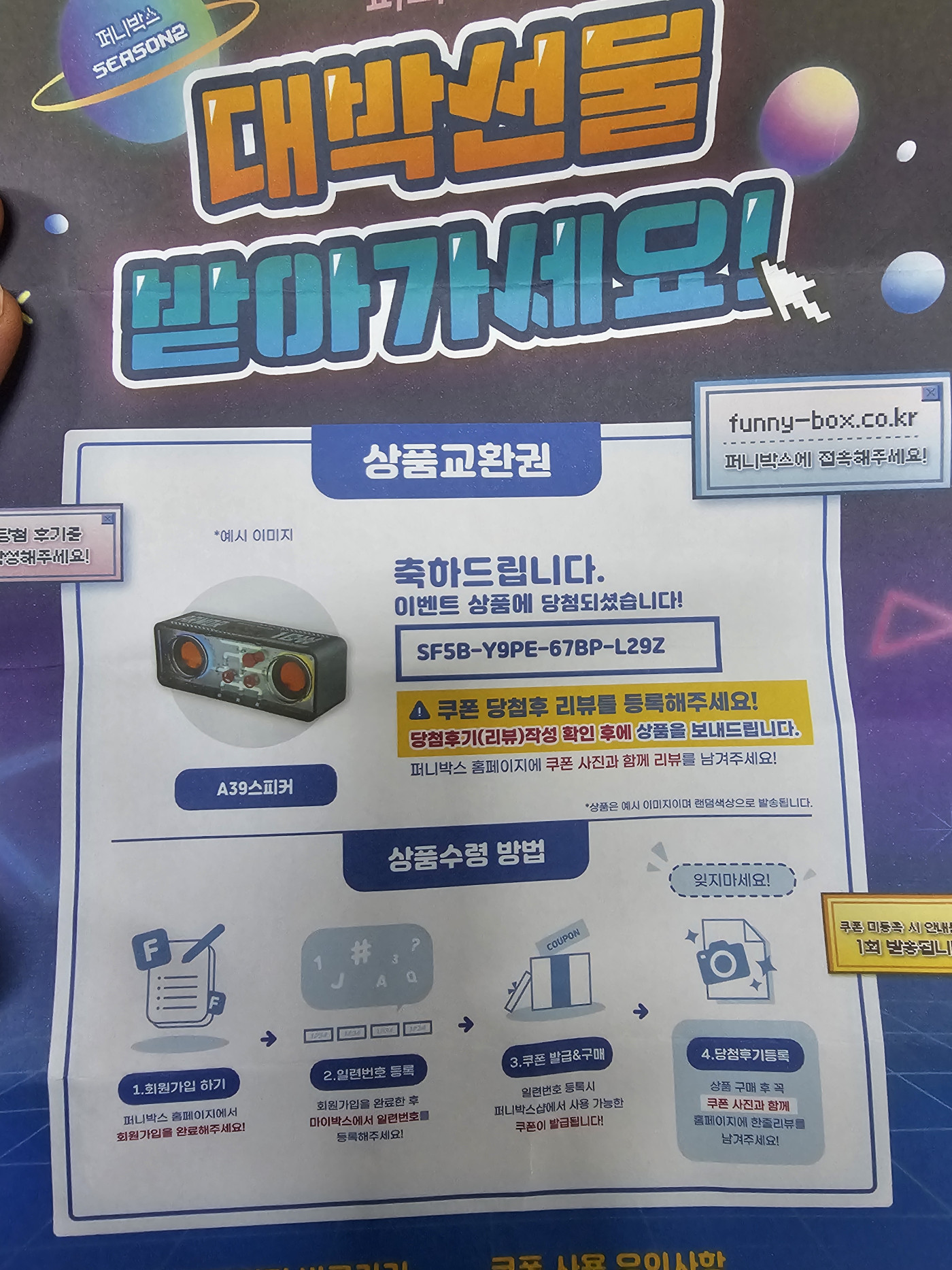 당첨됐어요~ 페이지 정보 본문 퍼니박스 당첨 인증 및 후기 게시판입니다. 당첨 쿠폰을 사진과 함께 멋진 리뷰를 남겨주세요~ 이전글당첨됬어요 24.03.25 다음글당첨됬어요! 24.03.25 목록 댓글 0 댓글목록 등록된 댓글이 없습니다.