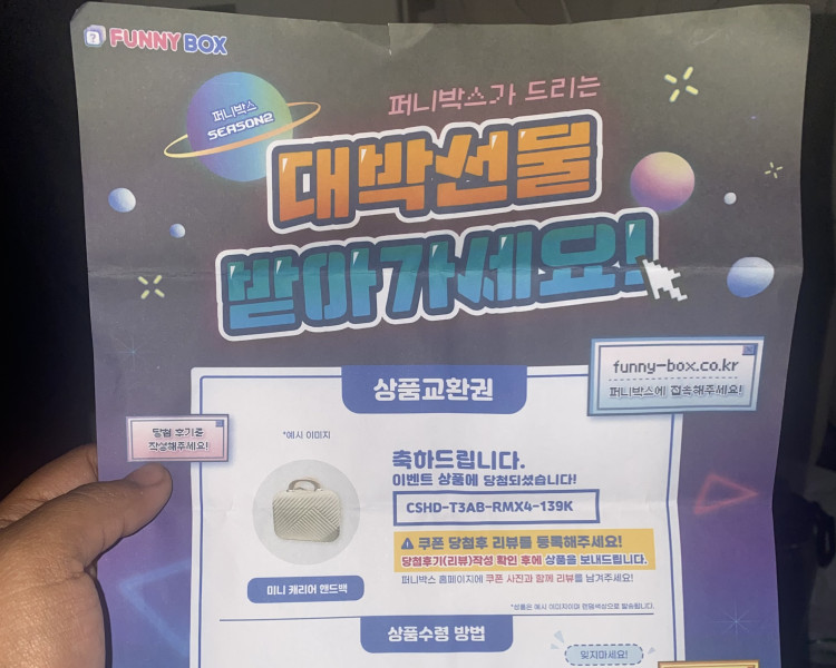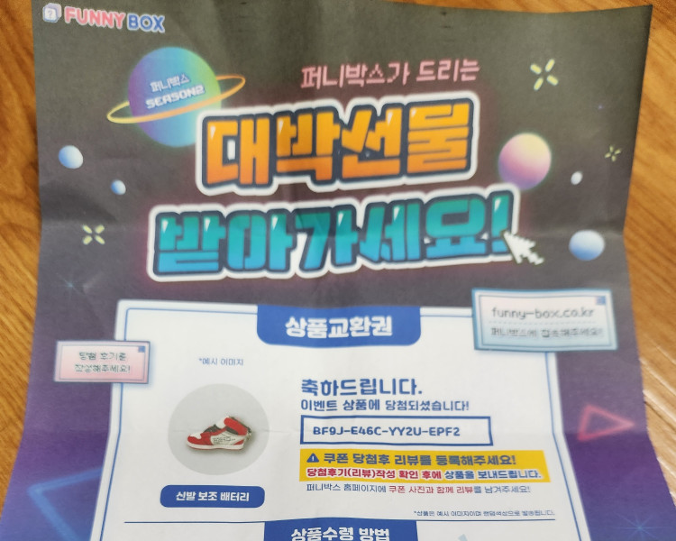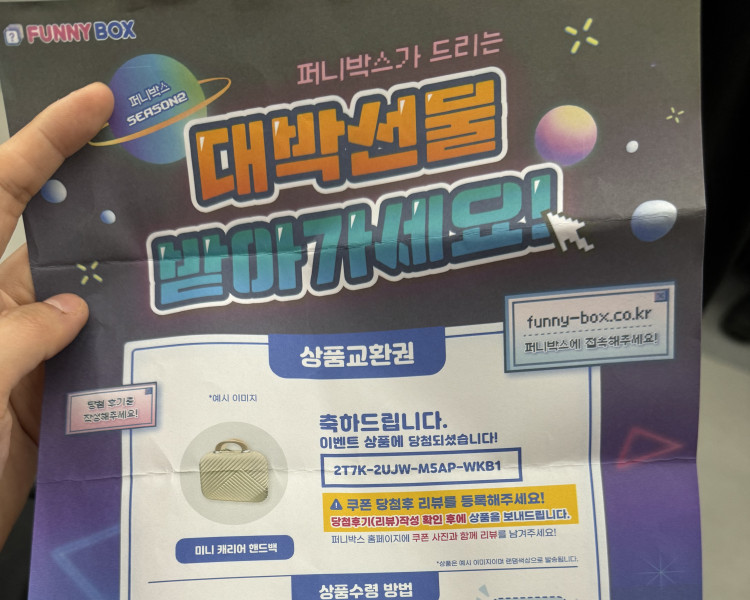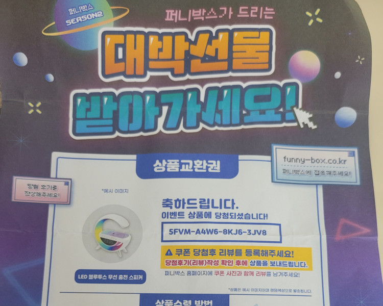 퍼니박스 당첨 인증 및 후기 게시판입니다. 당첨 쿠폰을 사진과 함께 멋진 리뷰를 남겨주세요~