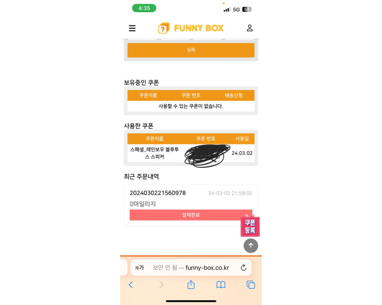쿠폰 중복 등록 방지를 위해 쿠폰 인증 시 쿠폰 번호는 가려주세요 ^_^