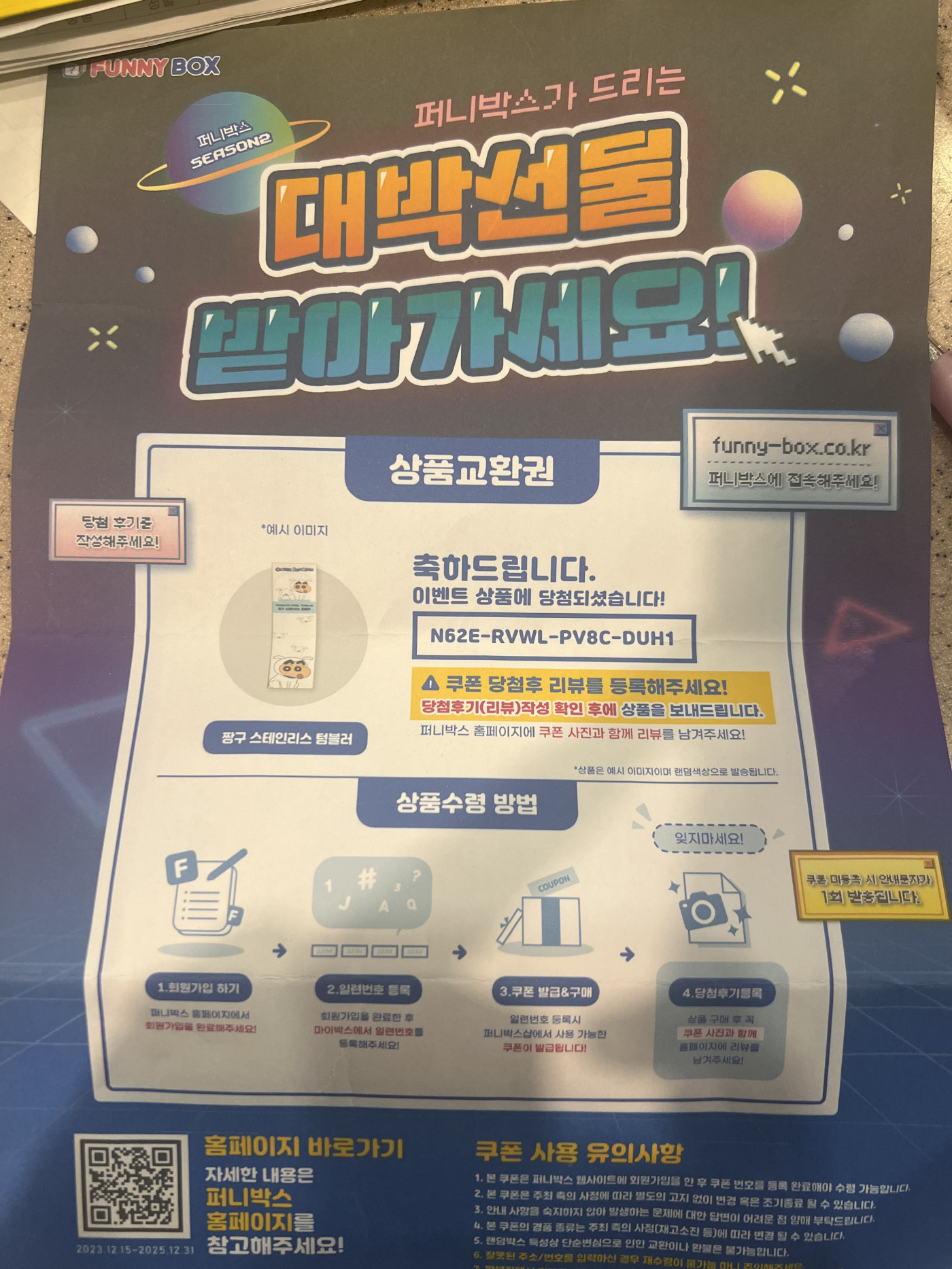 인증이요 페이지 정보 본문 퍼니박스 당첨 인증 및 후기 게시판입니다. 당첨 쿠폰을 사진과 함께 멋진 리뷰를 남겨주세요~ 이전글당첨 처음 되어봐요! 24.08.13 다음글운이좋았어요 24.08.04 목록 댓글 0 댓글목록 등록된 댓글이 없습니다.