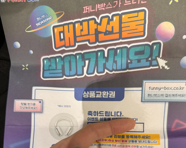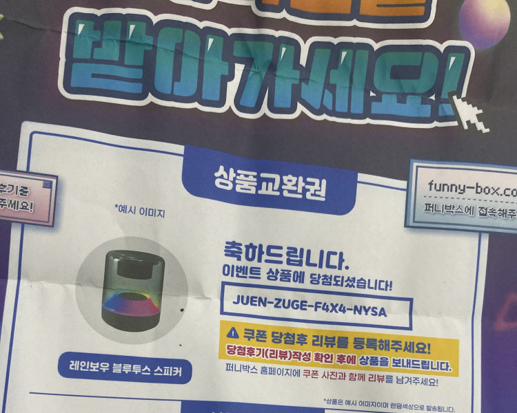 퍼니박스 당첨 인증 및 후기 게시판입니다. 당첨 당첨 쿠폰을 사진과 함께 멋진 리뷰를 남겨주세요~