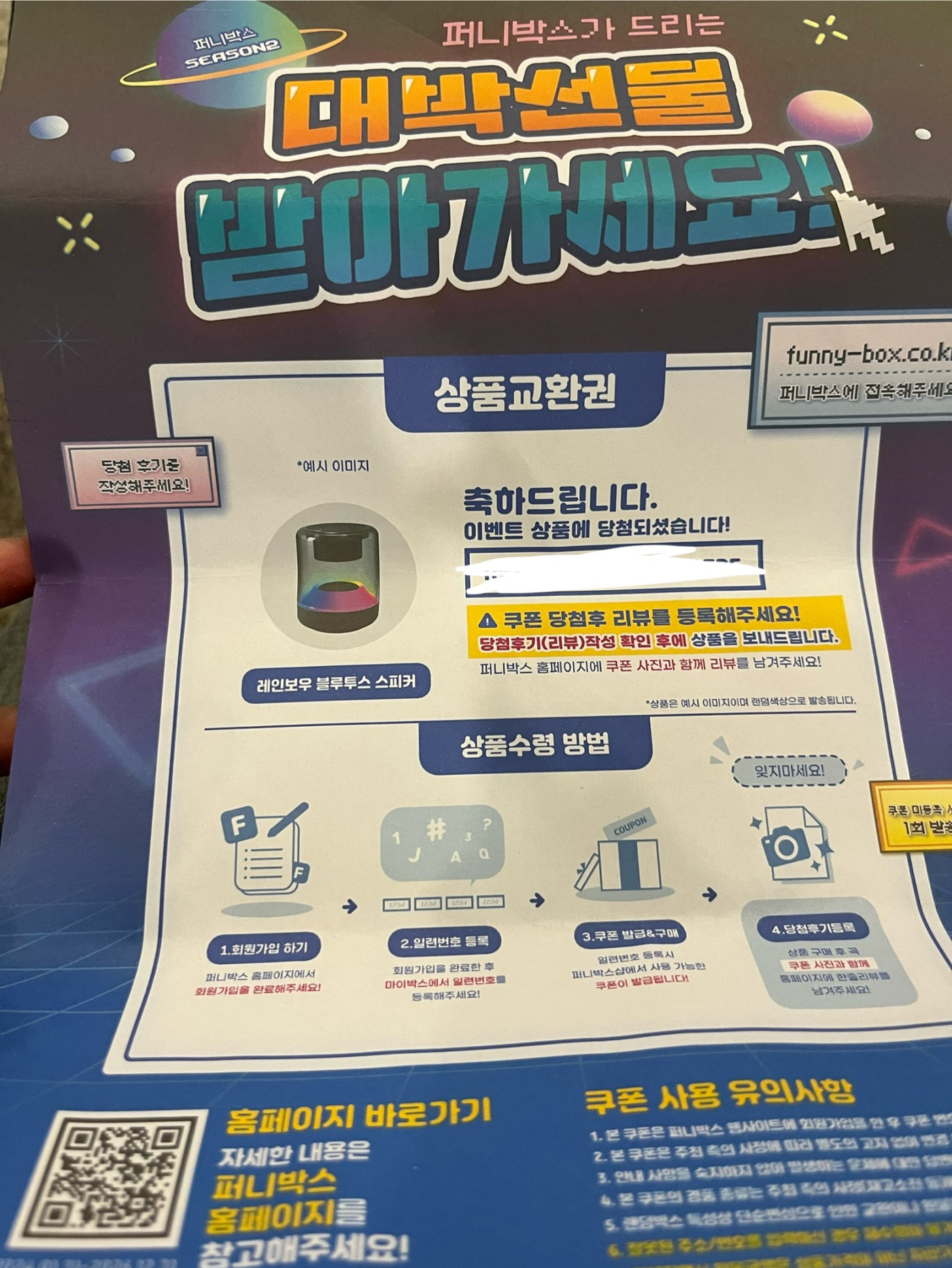 당첨 페이지 정보 본문 한번에 당첨됬어요!! 이전글충전기 당첨! 24.02.24 다음글코엑스 퍼니박스 신발베터리 당첨인데;... 24.02.23 목록 댓글 0 댓글목록 등록된 댓글이 없습니다.