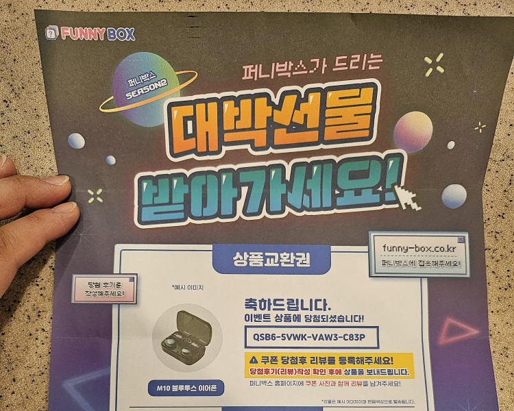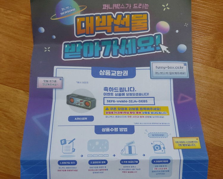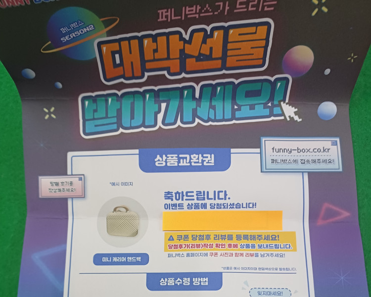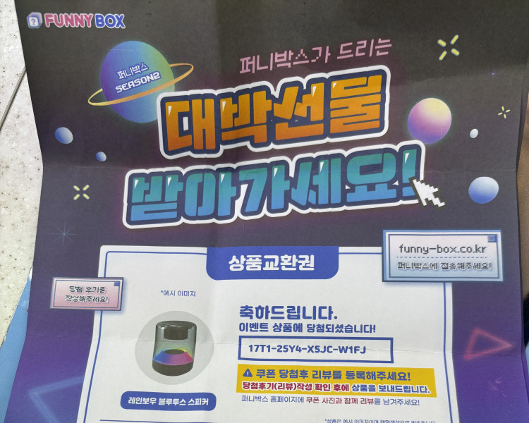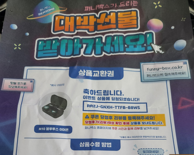 퍼니박스 당첨 인증 및 후기 게시판입니다. 당첨 쿠폰을 사진과 함께 멋진 리뷰를 남겨주세요~