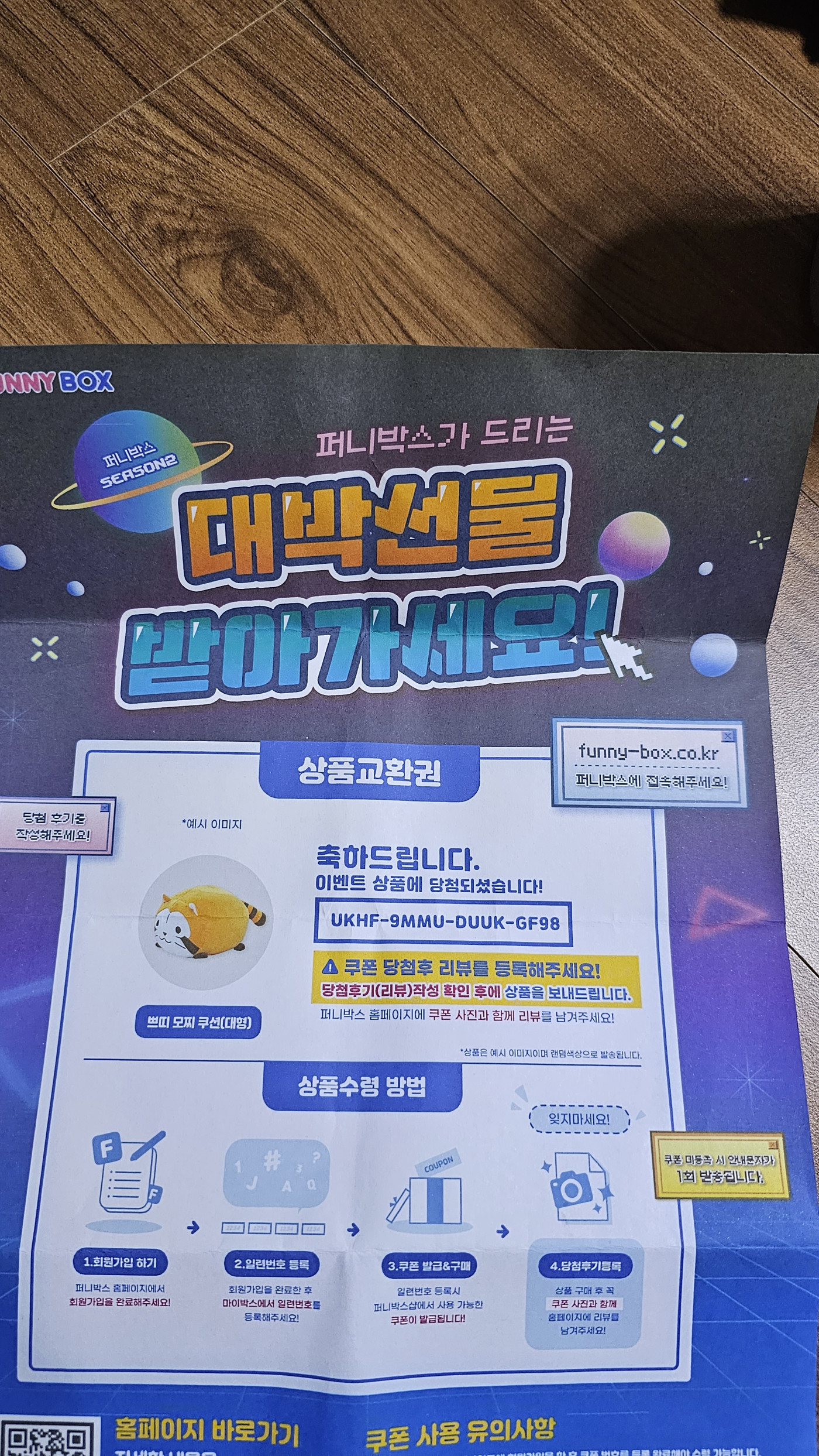 당첨후기입니다 페이지 정보 본문 퍼니박스 당첨 인증 및 후기 게시판입니다. 당첨 쿠폰을 사진과 함께 멋진 리뷰를 남겨주세요~ 이전글퍼니박스 당첨 후기!!! 24.01.21 다음글당첨선물받았어요~ 24.01.20 목록 댓글 0 댓글목록 등록된 댓글이 없습니다.