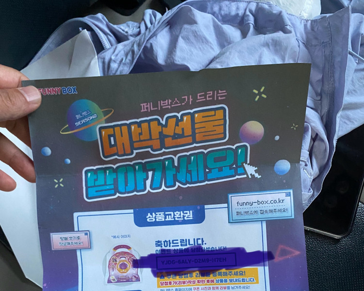 제주도 왔다가 득템했네요~ 아들이 너무 좋아해요~~ 퍼니박스 당첨 인증 및 후기 게시판입니다. 당첨 쿠폰을 사..
