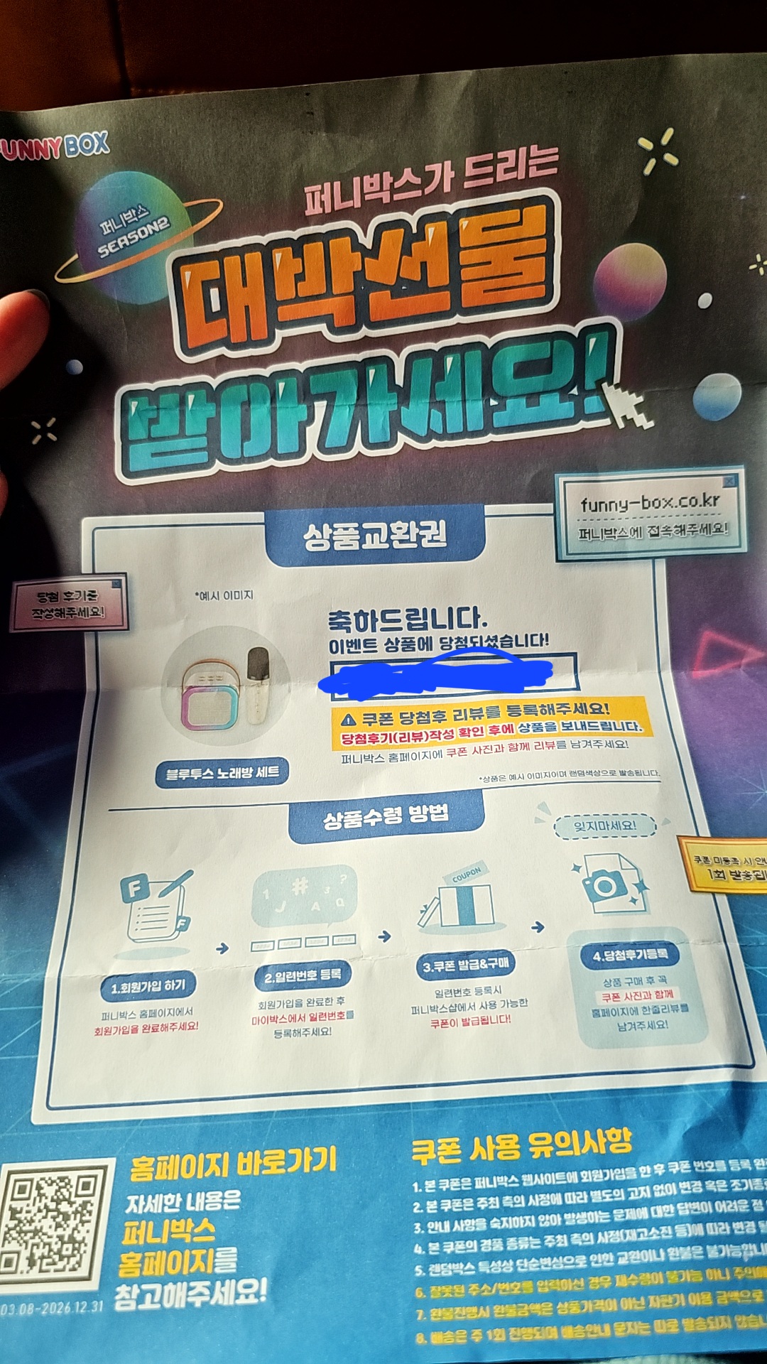 당첨 됐어요~ 페이지 정보 본문 친구랑 여행을 다녀오면서 마무리로 터미널에서 호기심으로 해봤는데 얼결에 당첨됐네여ㅋㅋ 유용하게 잘 쓸 거 같아요~ 이전글당첨되어인증합니다 24.07.14 다음글당첨 아싸~ 24.07.14 목록 댓글 0 댓글목록 등록된 댓글이 없습니다.