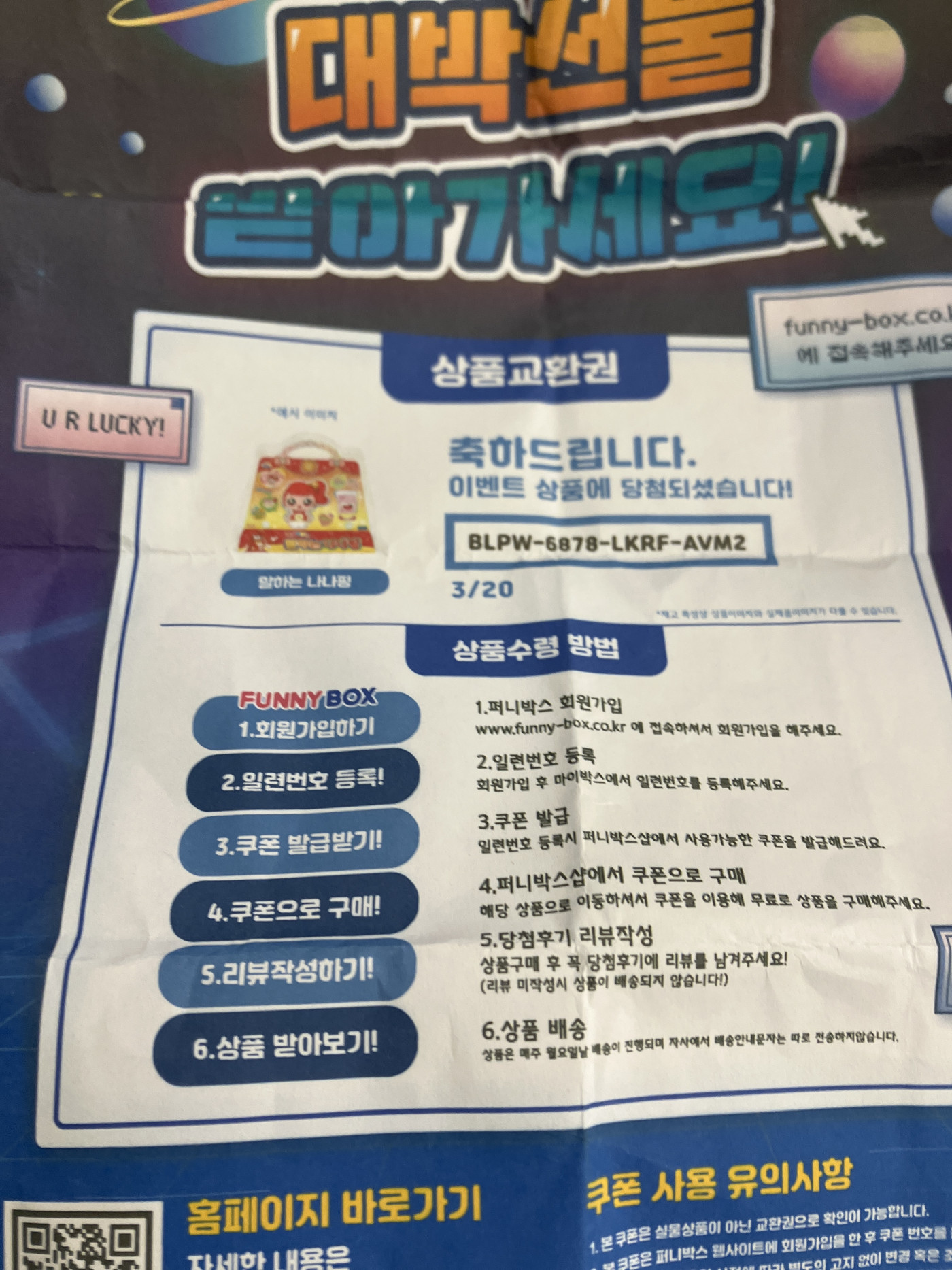 당첨후기 게시판은 퍼니박스를 이용한 사진을 1장이상 첨부 부탁드립니다.
