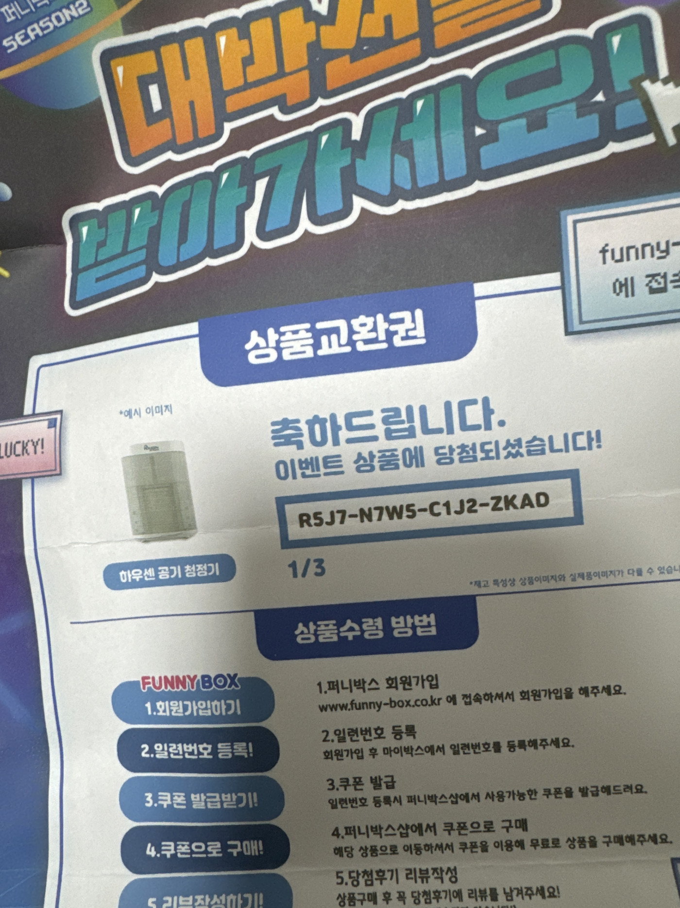 당첨후기 게시판은 퍼니박스를 이용한 사진을 1장이상 첨부 부탁드립니다.