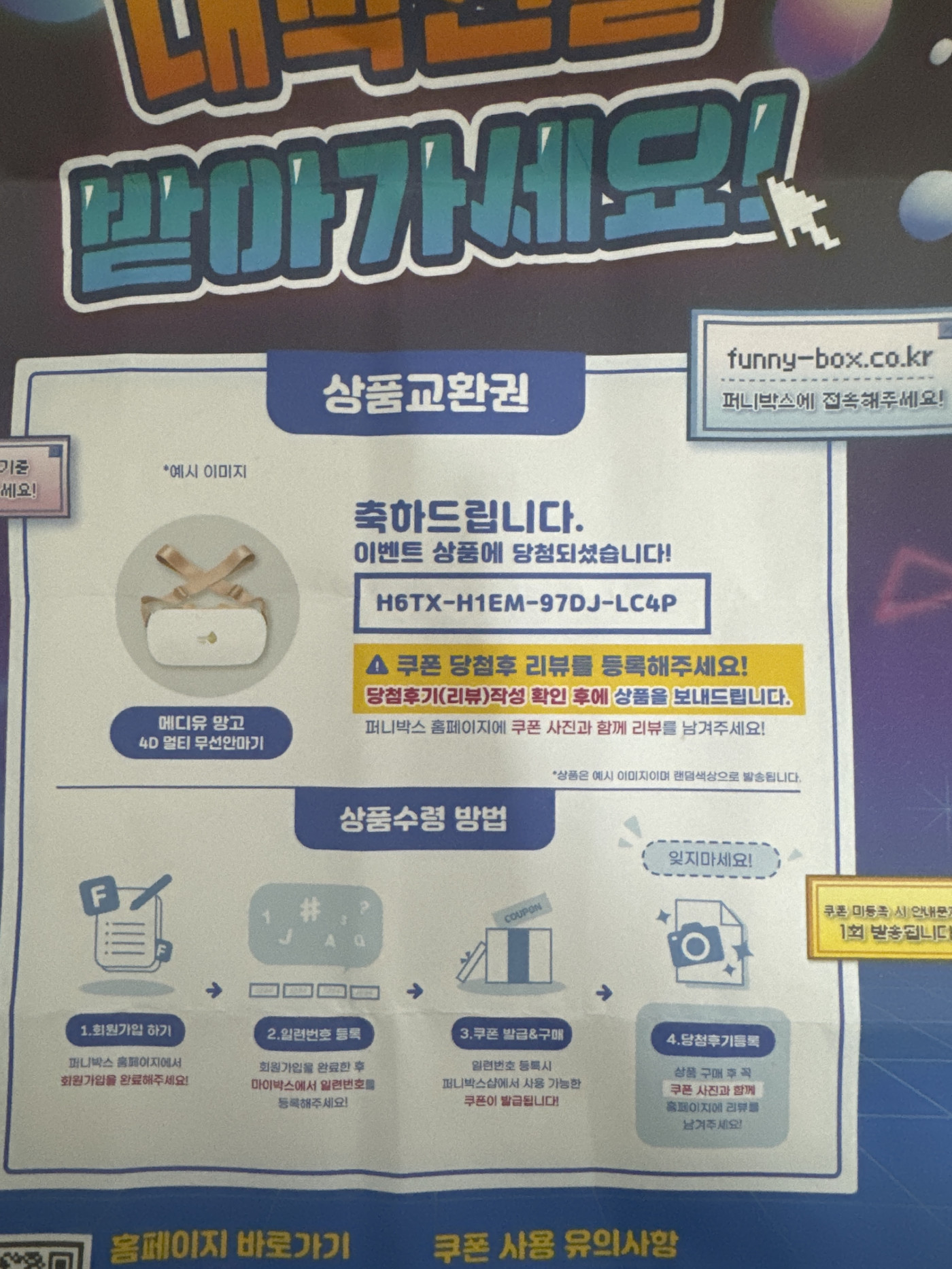 당첨후기 게시판은 퍼니박스를 이용한 사진을 1장이상 첨부 부탁드립니다.