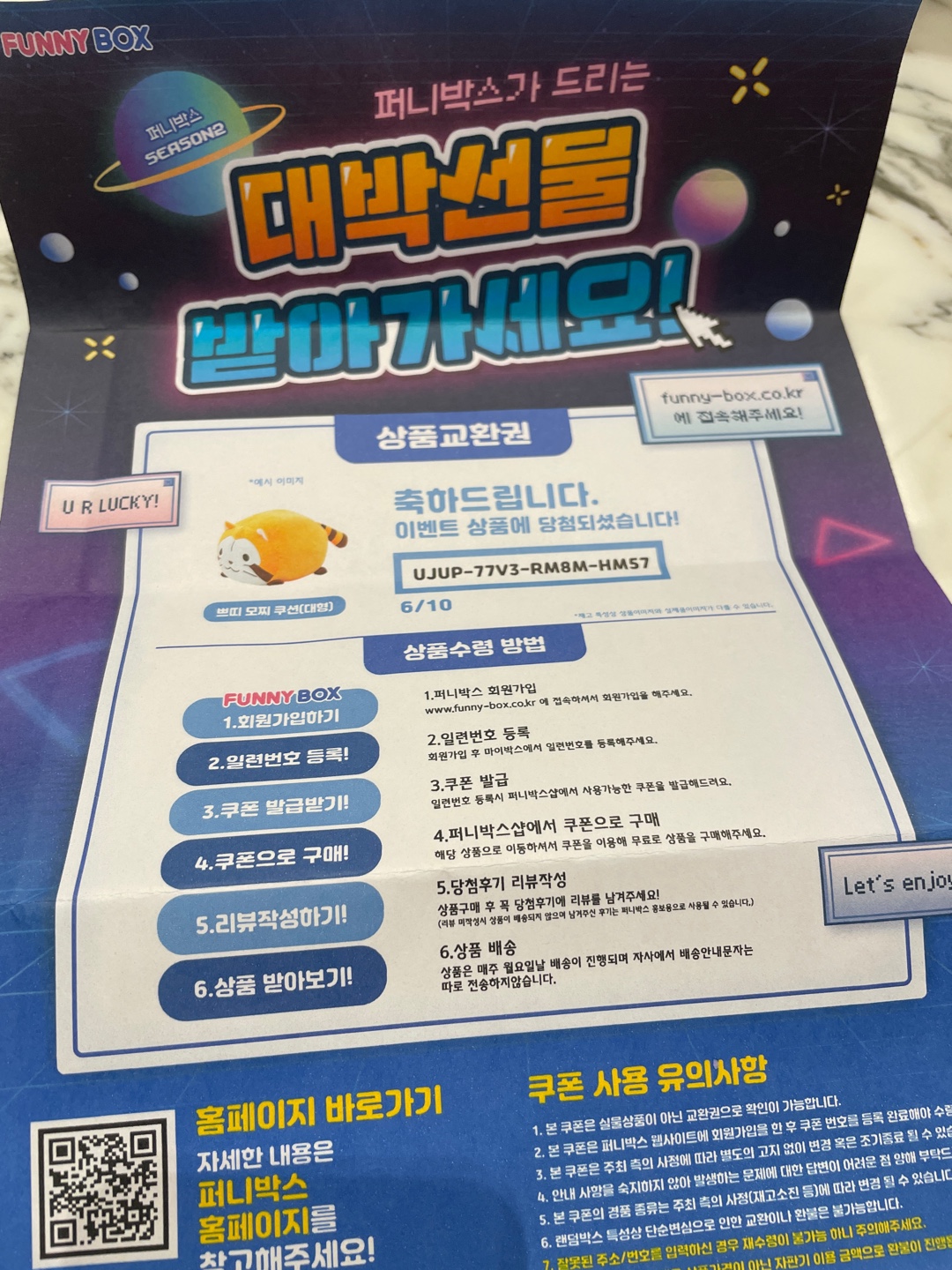 당첨후기 게시판은 퍼니박스를 이용한 사진을 1장이상 첨부 부탁드립니다.