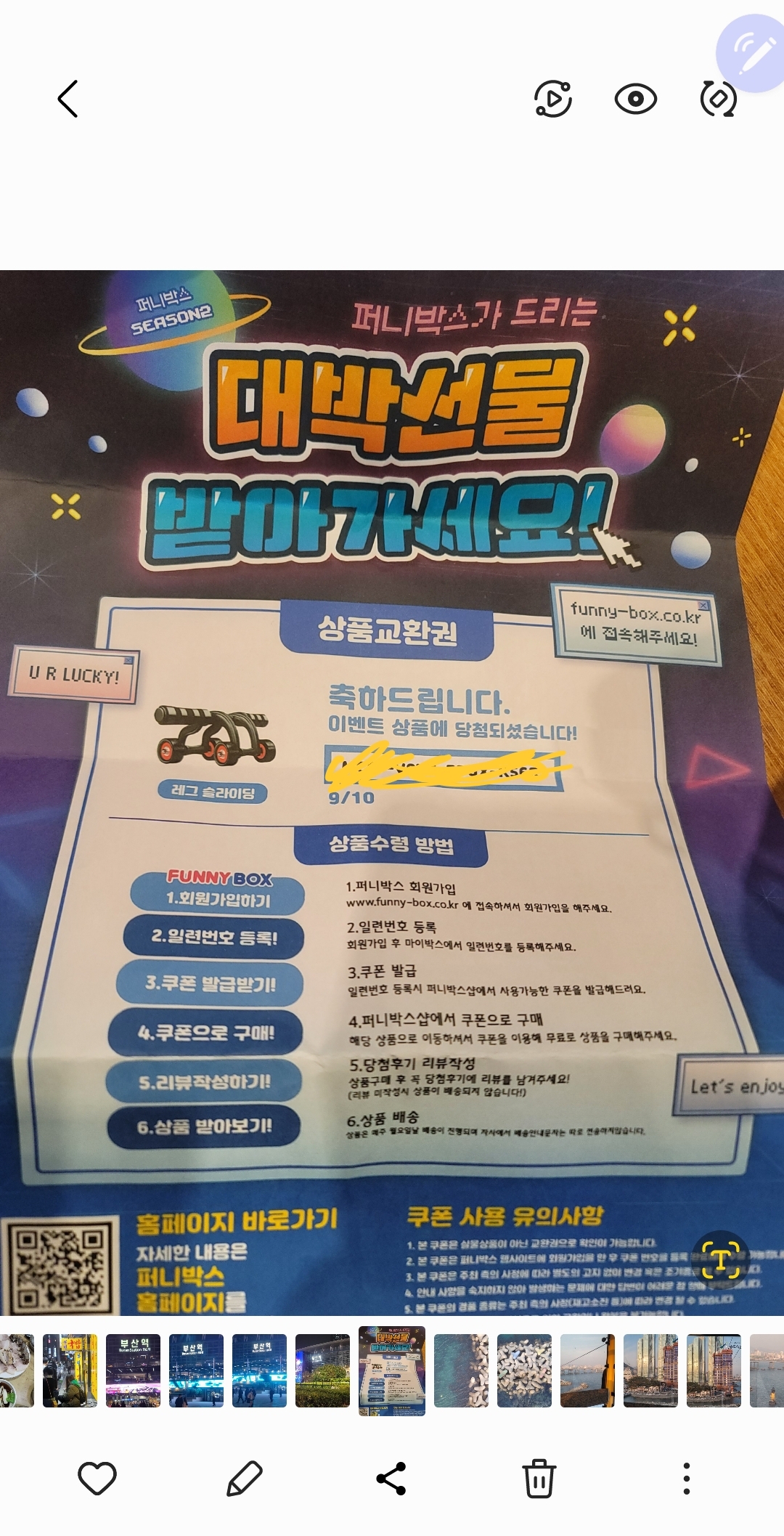 당첨 페이지 정보 본문 아이들과 부산 여행갔다가 당첨 됐어요 이전글용인 롯데시네마 23.12.14 다음글퍼니박스당첨♡ 23.12.12 목록 댓글 0 댓글목록 등록된 댓글이 없습니다.