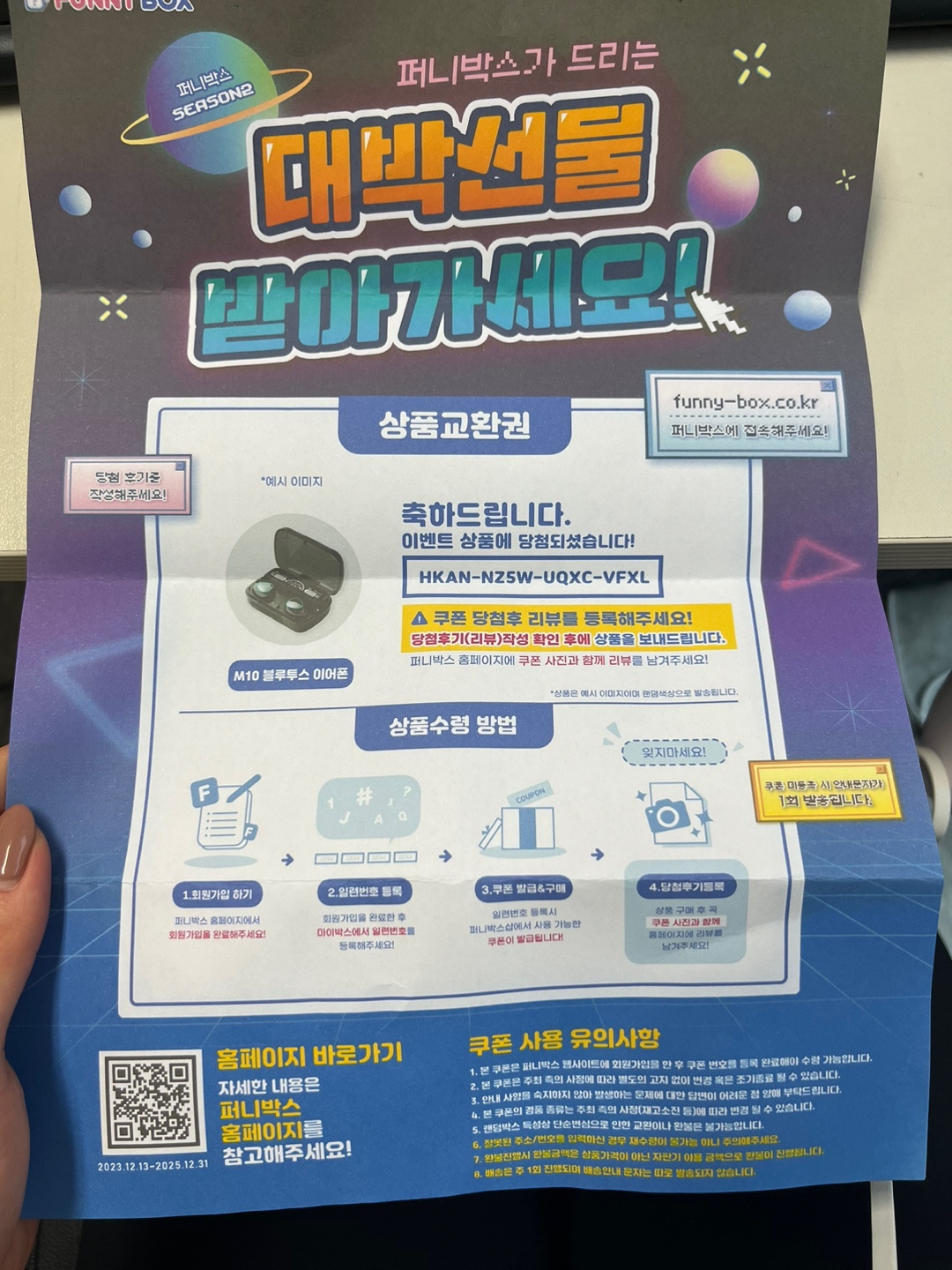 퍼니박스 당첨후기 페이지 정보 본문 코엑스에서 재미로 했다가 블루투스 이어폰 당첨ㅎㅎ 인증샷 올려용~~!! 이전글당첨후기 23.12.18 다음글당첨인증 23.12.18 목록 댓글 0 댓글목록 등록된 댓글이 없습니다.