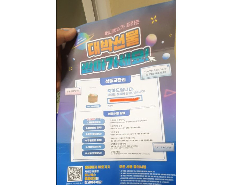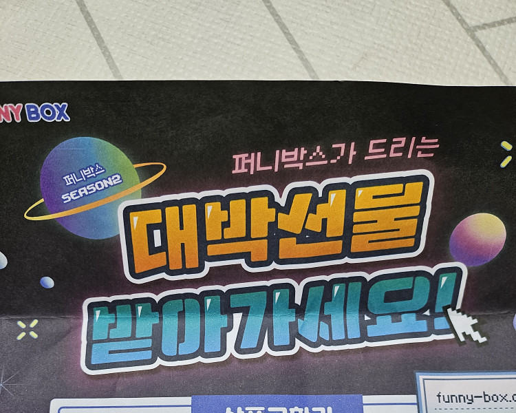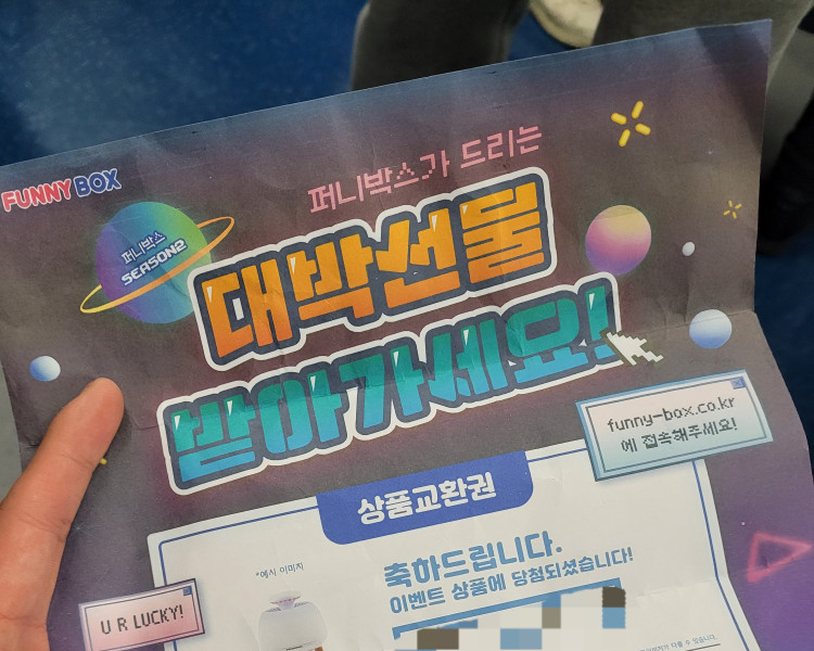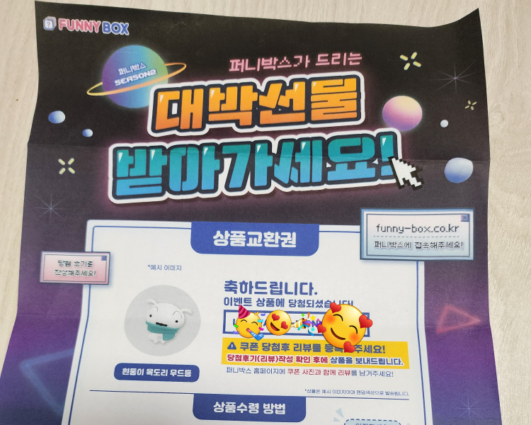 퍼니박스 당첨 후기 게시판입니다. 당첨후기 게시판은 퍼니박스를 이용한 사진을 1장이상 첨부 부탁드립니다. 종이를..