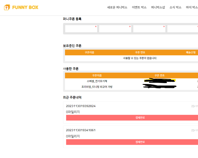 우리집 막냉이가 금손이라 당첨이 되었네요 ㅋㅋ언넝 배송오기만 기다리고있습니다 퍼니박스 재밌네여 ㅋㅋ