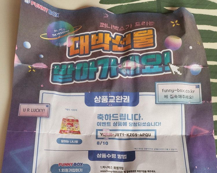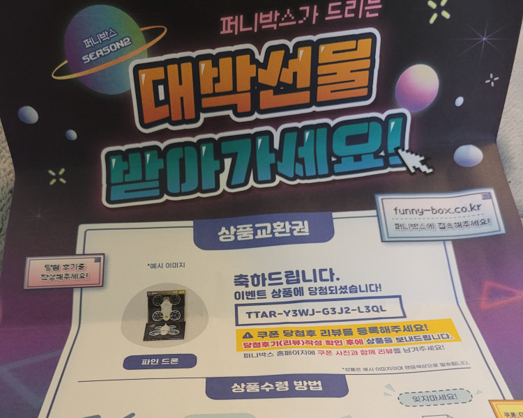 퍼니박스 당첨 후기 게시판입니다. 당첨후기 게시판은 퍼니박스를 이용한 사진을 1장이상 첨부 부탁드립니다.