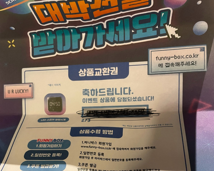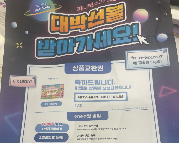 알바 하는 영화관에 새로 기계가 들어왔길래 재미삼아 한 번 뽑아봤는데 이게 당첨되네요 ㄷㄷ... 넘 기대돼요!!!