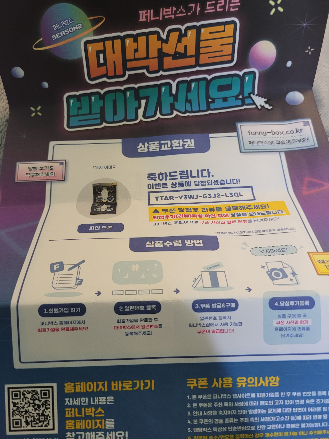 파인 드론 당첨되었습니다! 페이지 정보 본문 알바 하는 영화관에 새로 기계가 들어왔길래 재미삼아 한 번 뽑아봤는데 이게 당첨되네요 ㄷㄷ... 넘 기대돼요!!! 이전글상품인증샷 23.11.23 다음글당첨리뷰???? 23.11.22 목록 댓글 0 댓글목록 등록된 댓글이 없습니다.