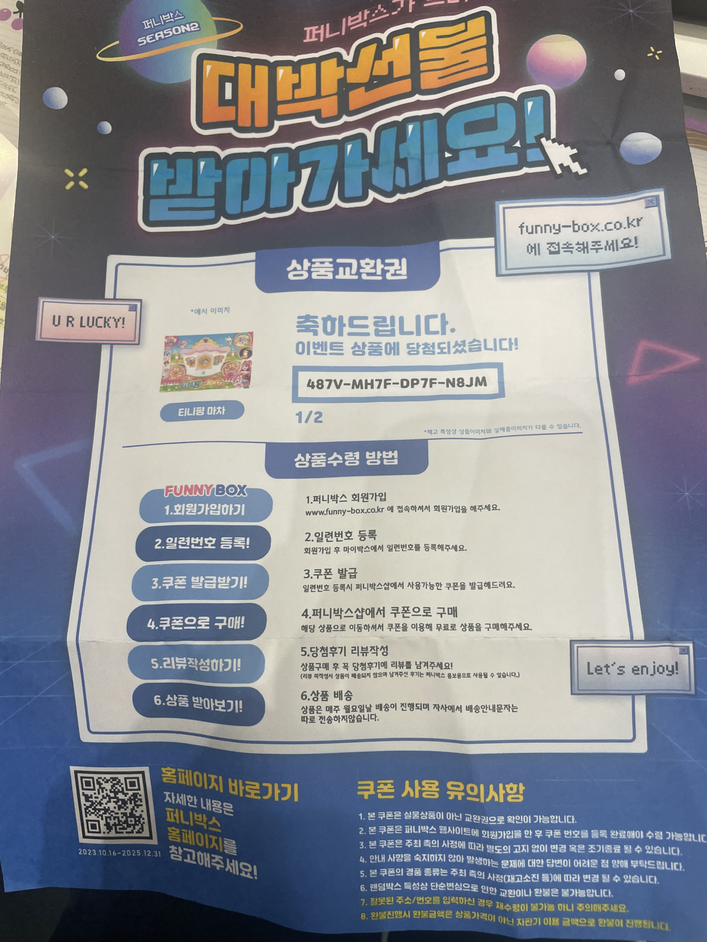 당첨후기 게시판은 퍼니박스를 이용한 사진을 1장이상 첨부 부탁드립니다.