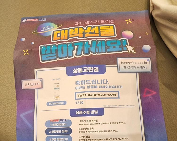 퍼니박스 당첨 후기 게시판입니다. 당첨후기 게시판은 퍼니박스를 이용한 사진을 1장이상 첨부 부탁드립니다.