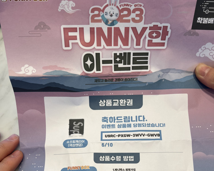 퍼니박스 당첨 후기 게시판입니다. 당첨후기 게시판은 퍼니박스를 이용한 사진을 1장이상 첨부 부탁드립니다. 당..