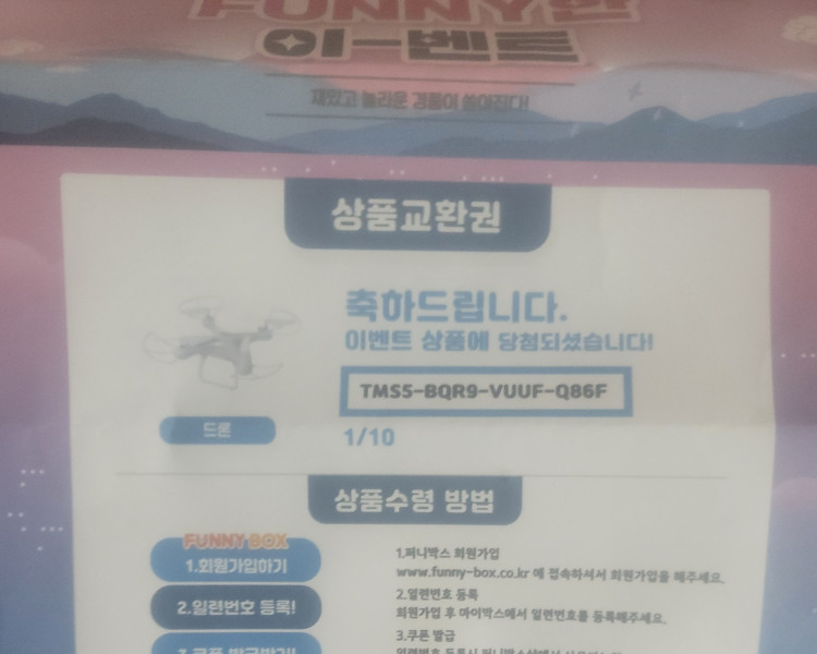 여자친구와 데이트하다가 우연히 뽑았는데 당첨되었습니다. 무려 드론이네요!! 드론 운전해보고 싶었는데 감사합니다!