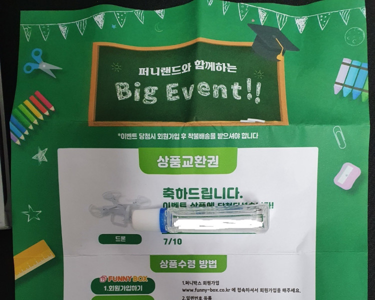 생일 선물로 퍼니 박스를 받았는데 대형 드론이 나와서 기분이 너무 좋네요~~ 기다리고 있겠습니다!!