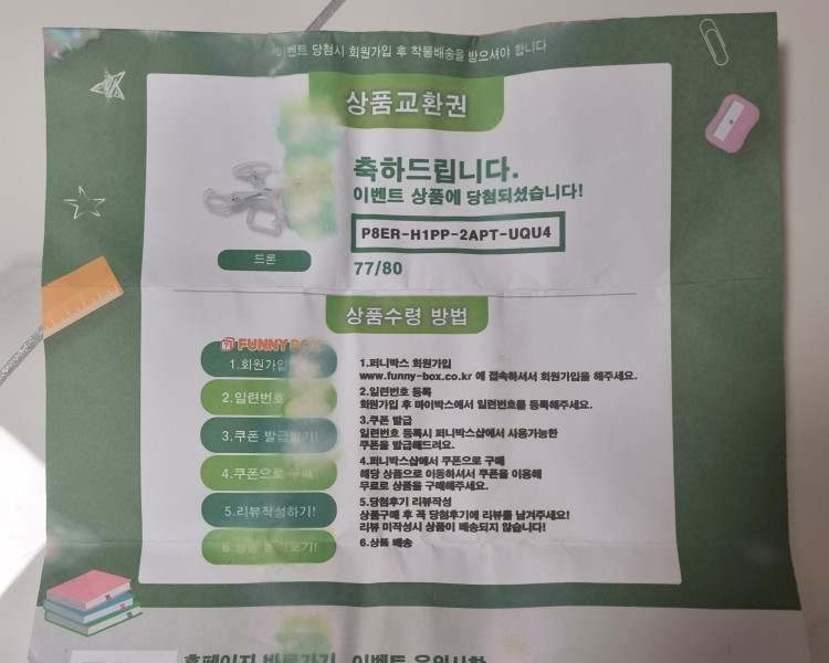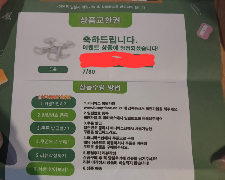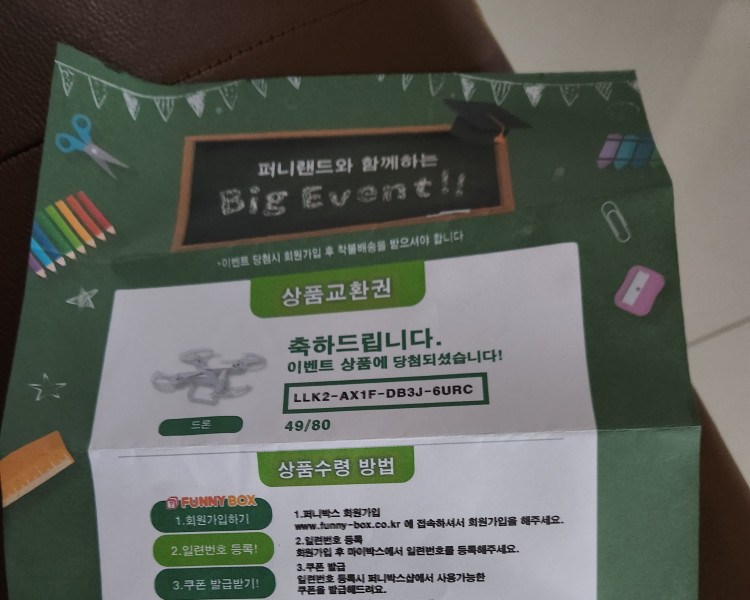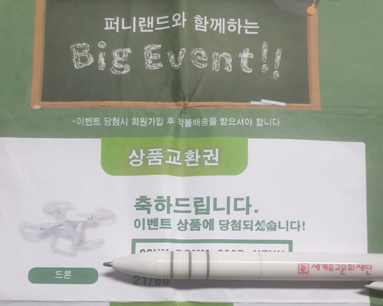 영화 보기 전에 심심해서 별 기대 안하고 뽑았더니 드론 당첨됐네요!!ㅎㅎ 처음엔 너무 가벼워서 실망했지만 당첨종이 보자마자..