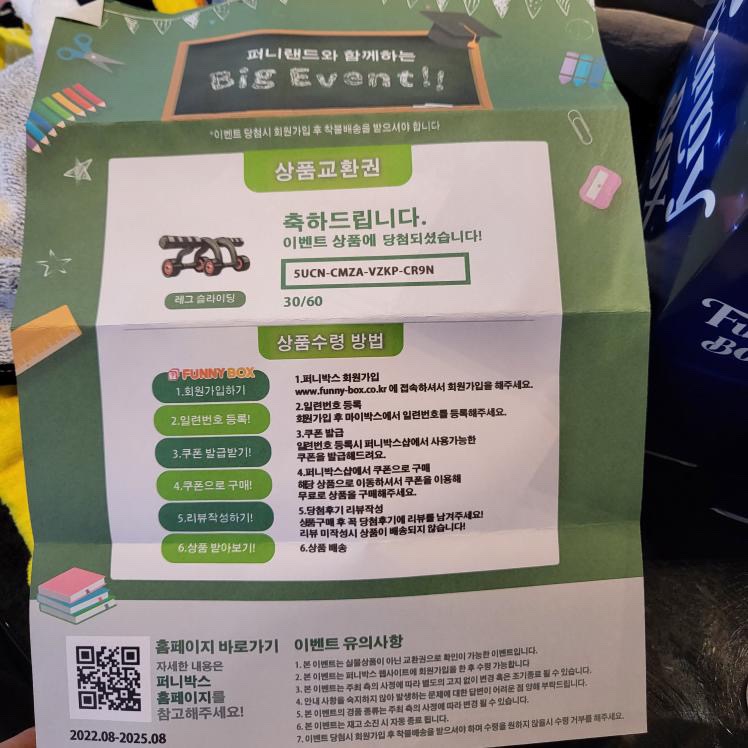 퍼니박스 당첨~~ 페이지 정보 본문 영화 보기 전에 심심해서 별 기대 안하고 뽑았더니 당첨됐네요!! 당첨종이 보자마자 운동해야겟다는 생각들었습니다~ 이전글당첨!! 22.10.14 다음글드론 당첨후기 22.10.12 목록 댓글 0 댓글목록 등록된 댓글이 없습니다.