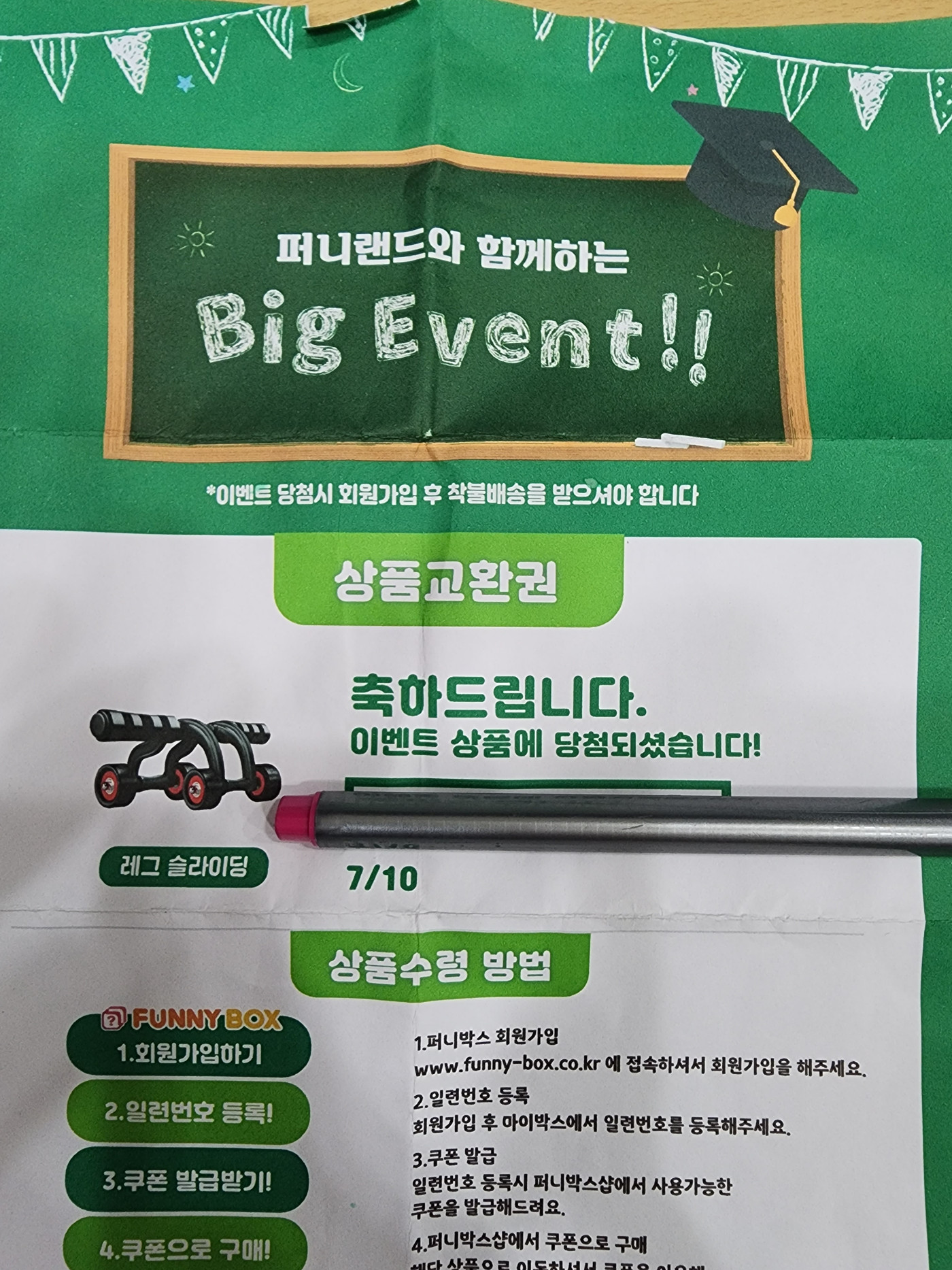 레그슬라이딩 페이지 정보 본문 퍼니박스 당첨 후기 게시판입니다. 당첨후기 게시판은 퍼니박스를 이용한 사진을 1장이상 첨부 부탁드립니다. 아이가 재미로 뽑았는데 당첨되었네요~~ 이전글당첨후기 22.10.22 다음글대형드론 22.10.18 목록 댓글 0 댓글목록 등록된 댓글이 없습니다.