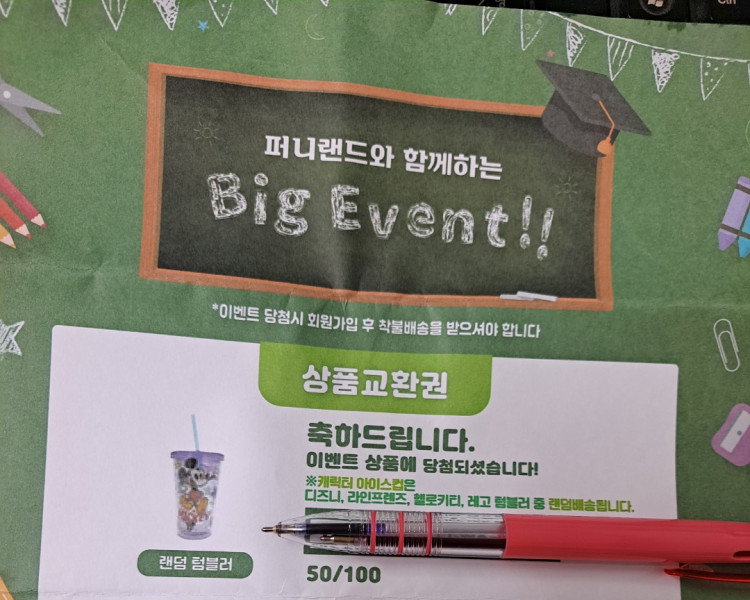 퍼니박스 당첨되엇어요~~ 텀블러 언능 왔으면좋겟네요>