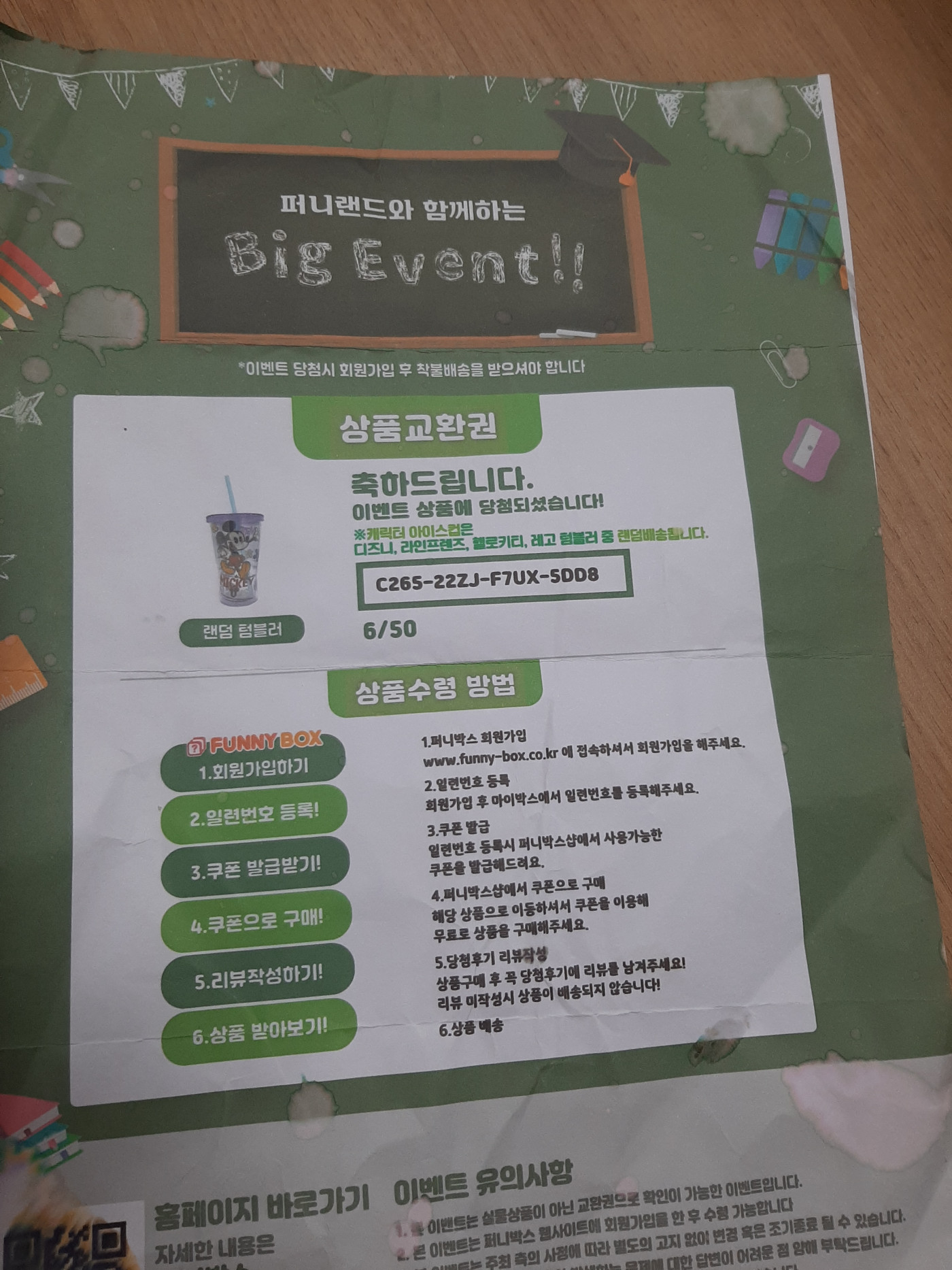 당첨 된건 좋은데 쿠폰 사용 방식이 좀 불편하네요.
