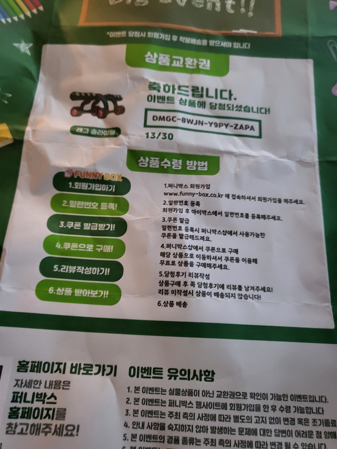 퍼니박스 당첨 페이지 정보 본문 레그 슬라이딩 당첨됫어요 영화보러가서 심심풀이로 뽑앗더니 닽첨 ㅎ 이전글당첨 후기 ! 22.06.20 다음글담첨 후기! 22.06.20 목록 댓글 0 댓글목록 등록된 댓글이 없습니다.