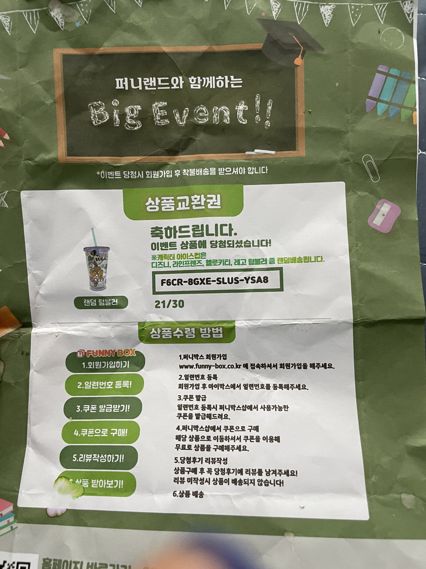 랜덤텀블러 당첨되엇어요ㅎㅎ