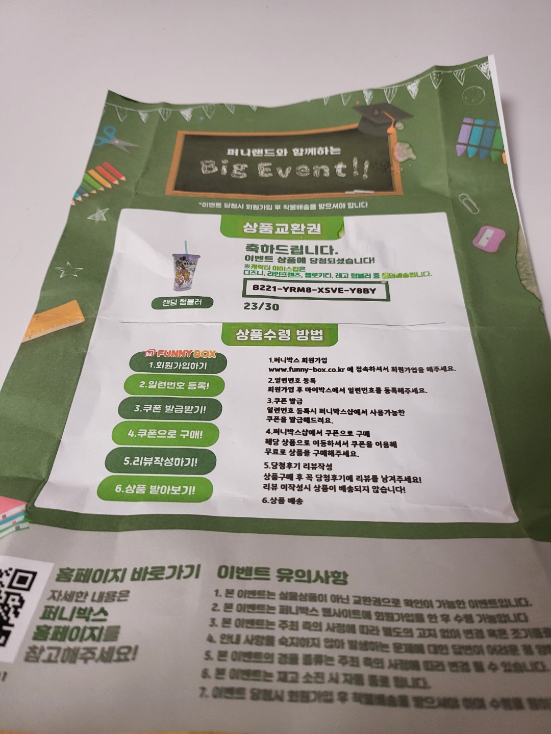 당첨후기 페이지 정보 본문 퍼니박스 당첨 후기 게시판입니다. 당첨후기 게시판은 퍼니박스를 이용한 사진을 1장이상 첨부 부탁드립니다. 당첨됫네요 감사합니다 이전글당첨후기 22.06.11 다음글당첨이네요 22.06.08 목록 댓글 0 댓글목록 등록된 댓글이 없습니다.