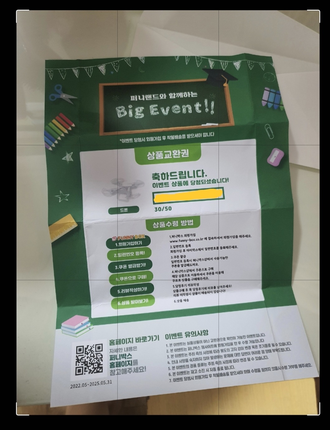 퍼니박스 당첨되었어요!! 페이지 정보 본문 선물로 받은 퍼니박스였는데 오픈하니 드론이 당첨되었네요~ 얼른 배송 받아서 딸아이와 같이 띄워보고 싶어요. 이전글당첨 22.06.17 다음글퍼니박스 당첨됐습니다~ 22.06.14 목록 댓글 0 댓글목록 등록된 댓글이 없습니다.