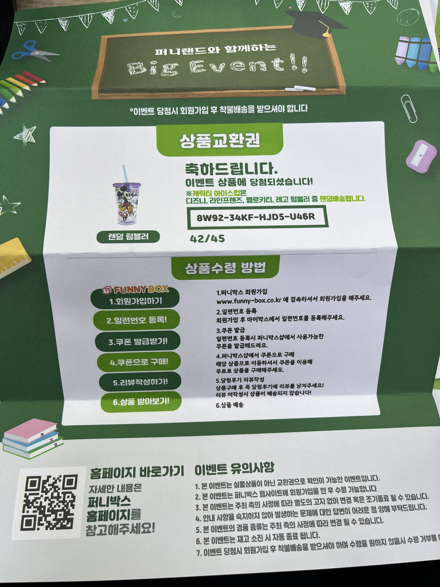 텀블러 당첨 페이지 정보 본문 랜덤 텀블러 당첨 되었어요 미니마우스가 오면 좋겠어요 ㅠㅠ 이전글퍼니박스 드론당첨!!!!! 뜻밖의 횡재 22.05.28 다음글텀블러 당첨 22.05.26 목록 댓글 0 댓글목록 등록된 댓글이 없습니다.