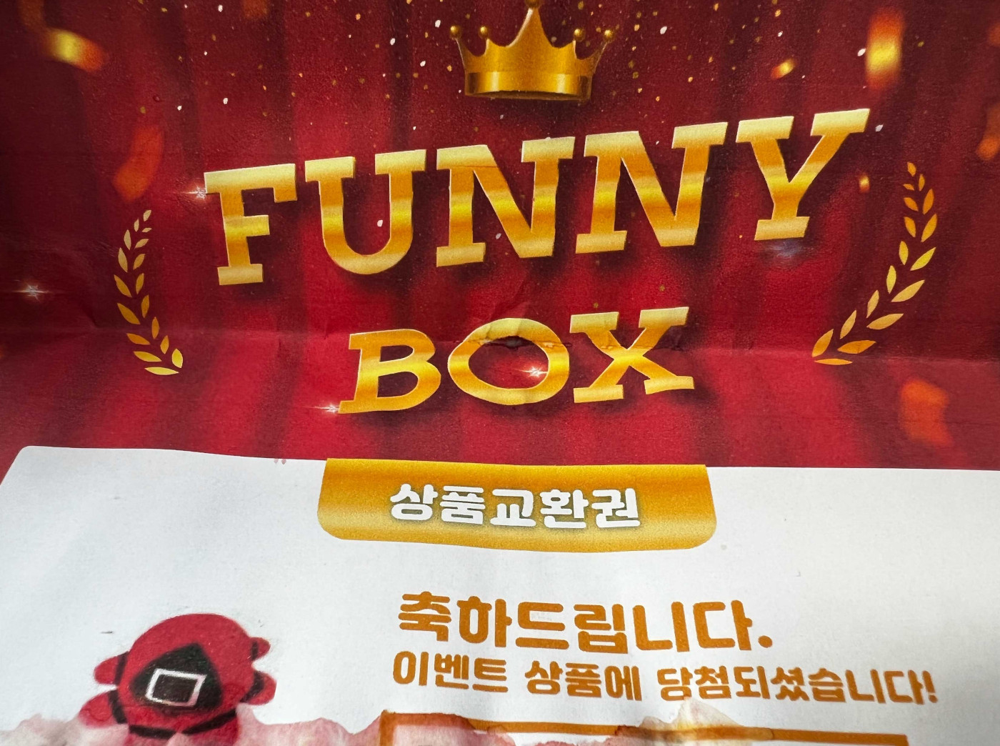 큰상자라 상품이 들어있을 줄 알았는데 당첨종이 달랑있어 딸 실망. (종이상자 쓰레기 아까움)