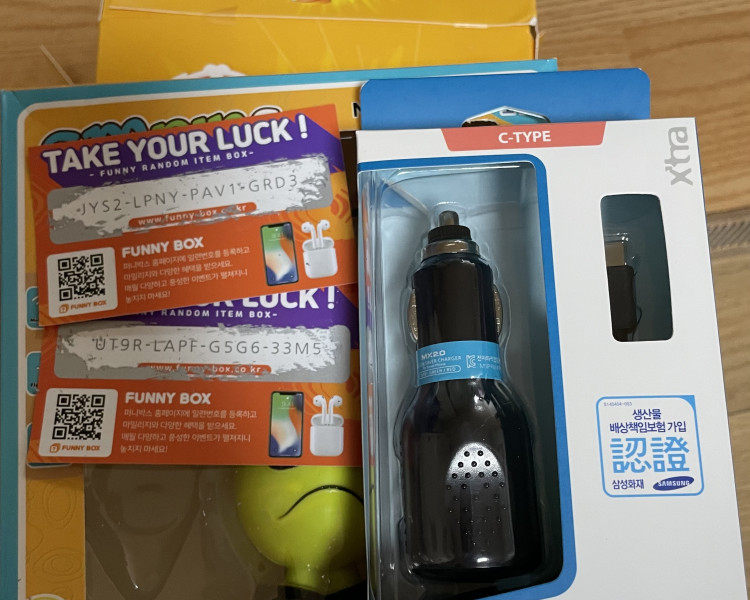 처음으로 두개 삿는데 하나는 충전해서 하늘나는 장난감이랑 자동차꼽는 고속충전기 뽑앗네용 ㅠㅠ 다음에 다시 뽑아봐야겟어용..