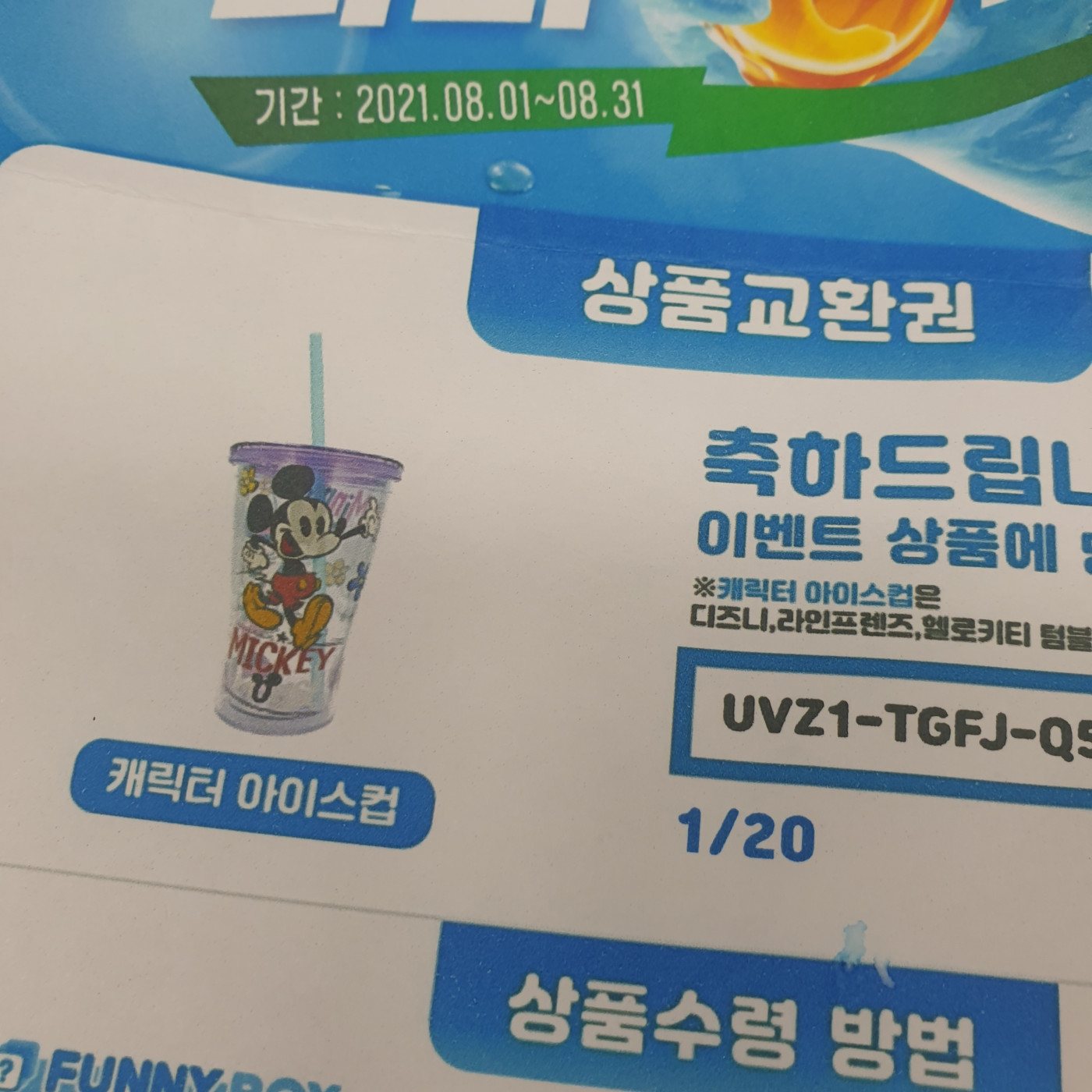 캐릭터컵에 당첨됐네요.ㅋ