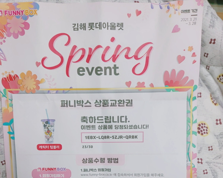 딸아이가 김해아울렛 갔다가 했는데 당첨됐네요 정말 감사합니다^^*
